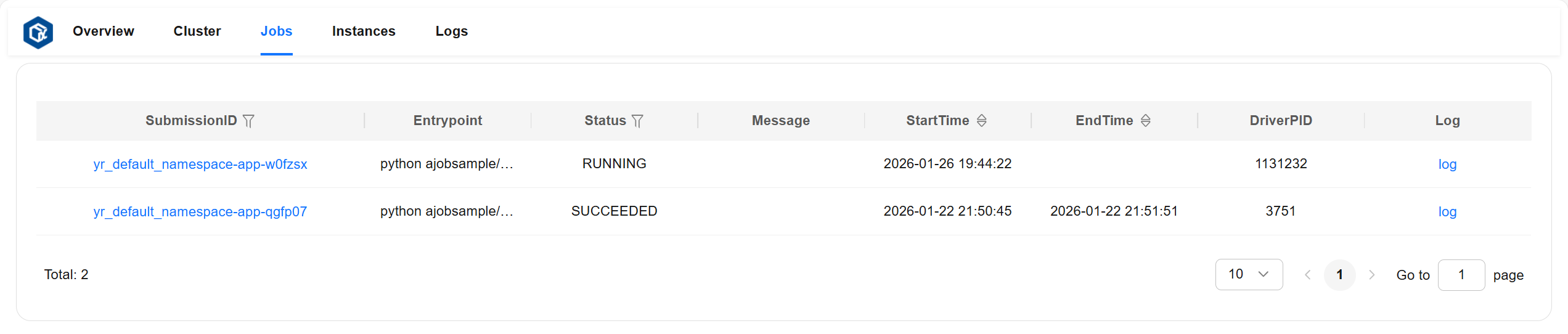 driverPID:作业运行进程的 pid。
